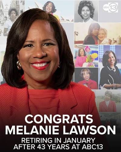 Melanie Lawson’s journalism career began unexpectedly. While interning at ABC 13, a simple moment of initiative changed her path. She asked to do an interview, prepared a story, and — in a serendipitous mistake — went on air before proper clearance. That moment marked the beginning of a long, impactful career that would span more than four decades.